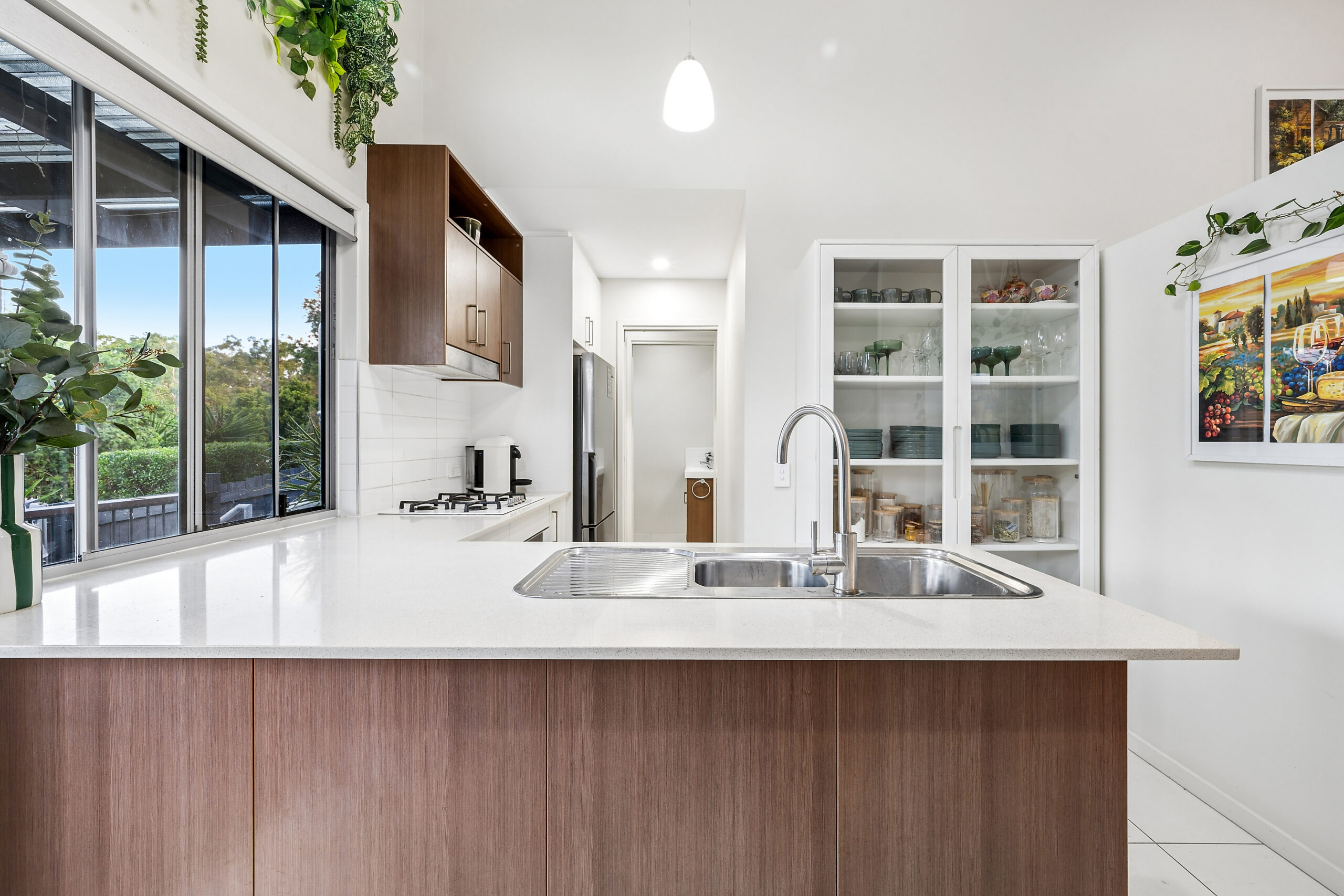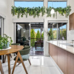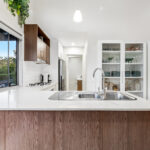The kitchen is centrally located and well-appointed with stone benchtops, quality appliances and ample storage, overlooking the dining and living zones to create a functional and connected living environment.