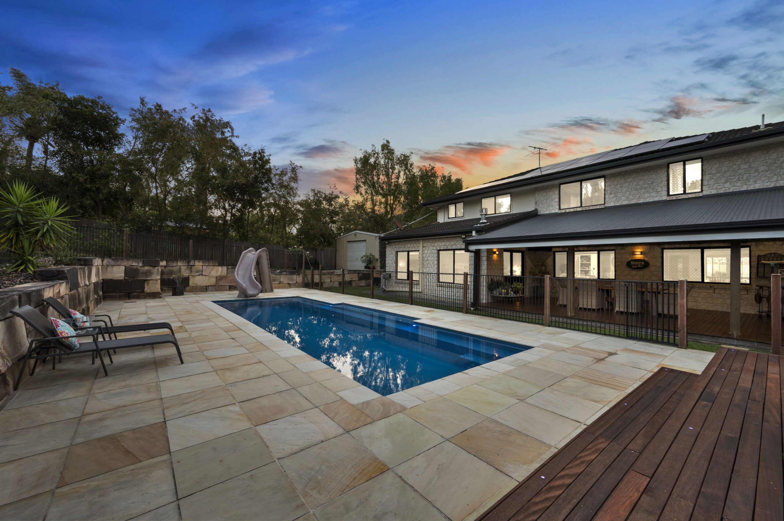 • Sparkling swimming pool with decked seating area