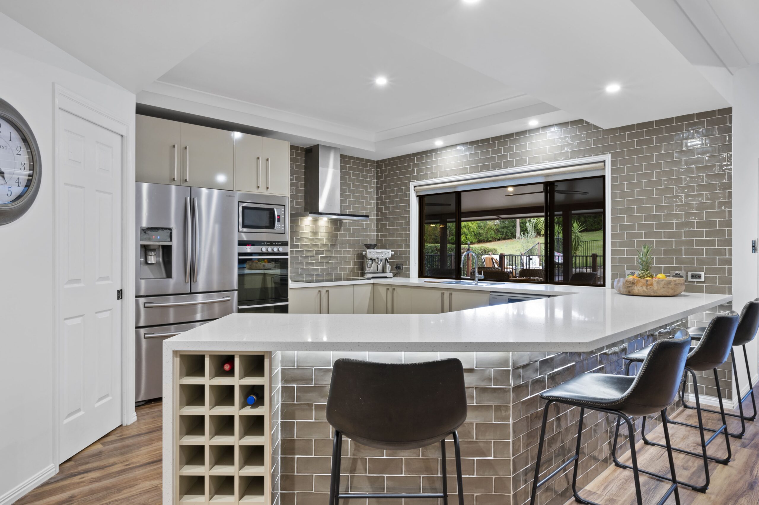 • Designer kitchen with breakfast bar, walk-in pantry and servery window