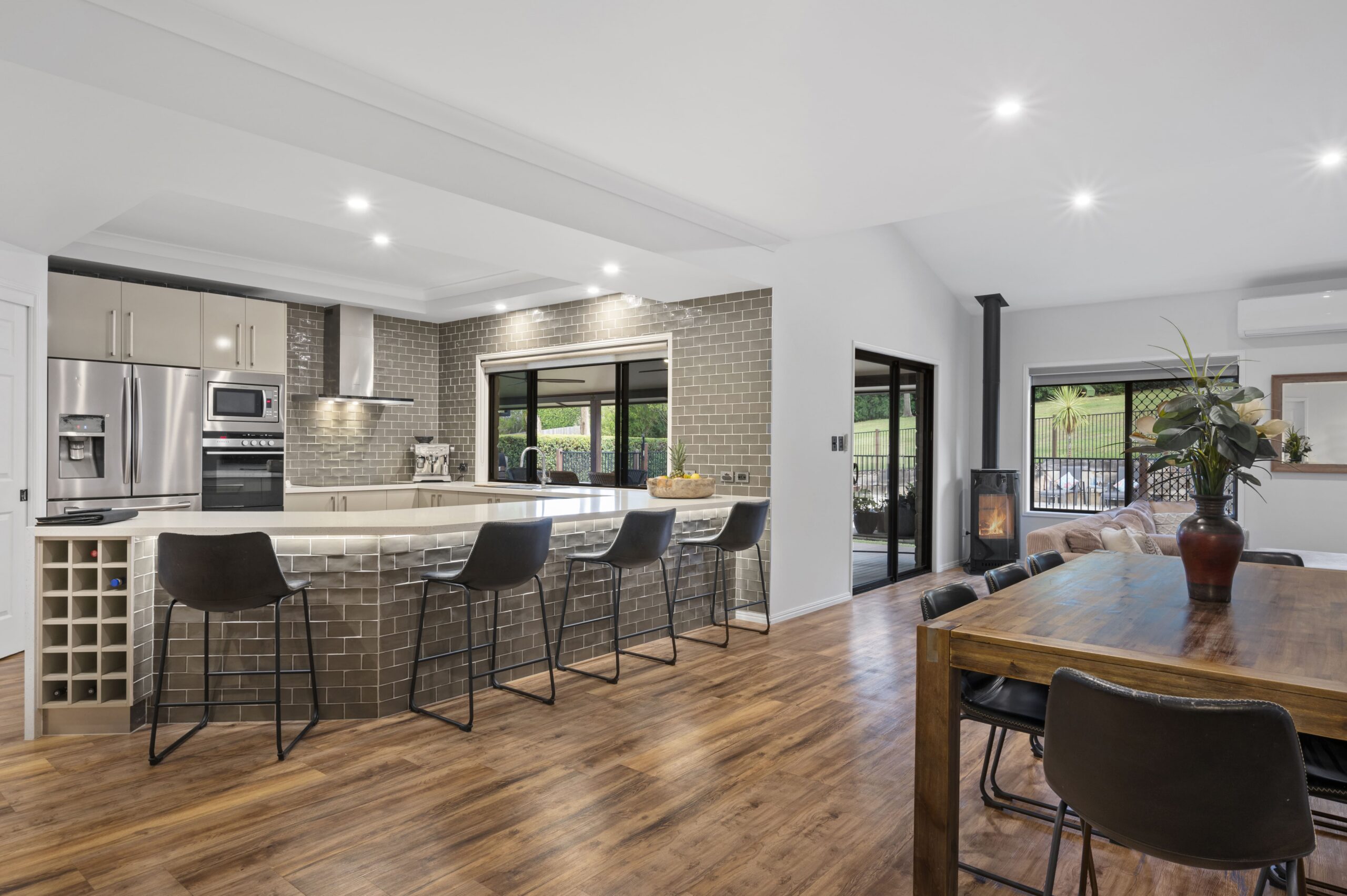 At the heart of the home, the beautifully appointed kitchen is both refined and practical, perfectly suited to entertaining and daily life. Featuring a breakfast bar, walk-in pantry and convenient servery window, it connects effortlessly to the open-plan lounge and dining and flows out to the expansive outdoor entertaining area – making hosting family and friends an effortless pleasure.
