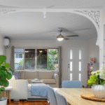 Step inside to discover beautiful wooden floorboards and a light-filled living area complete with air-conditioning and ceiling fans for year-round comfort. The well-appointed kitchen includes a dishwasher and ample storage, making everyday living easy.