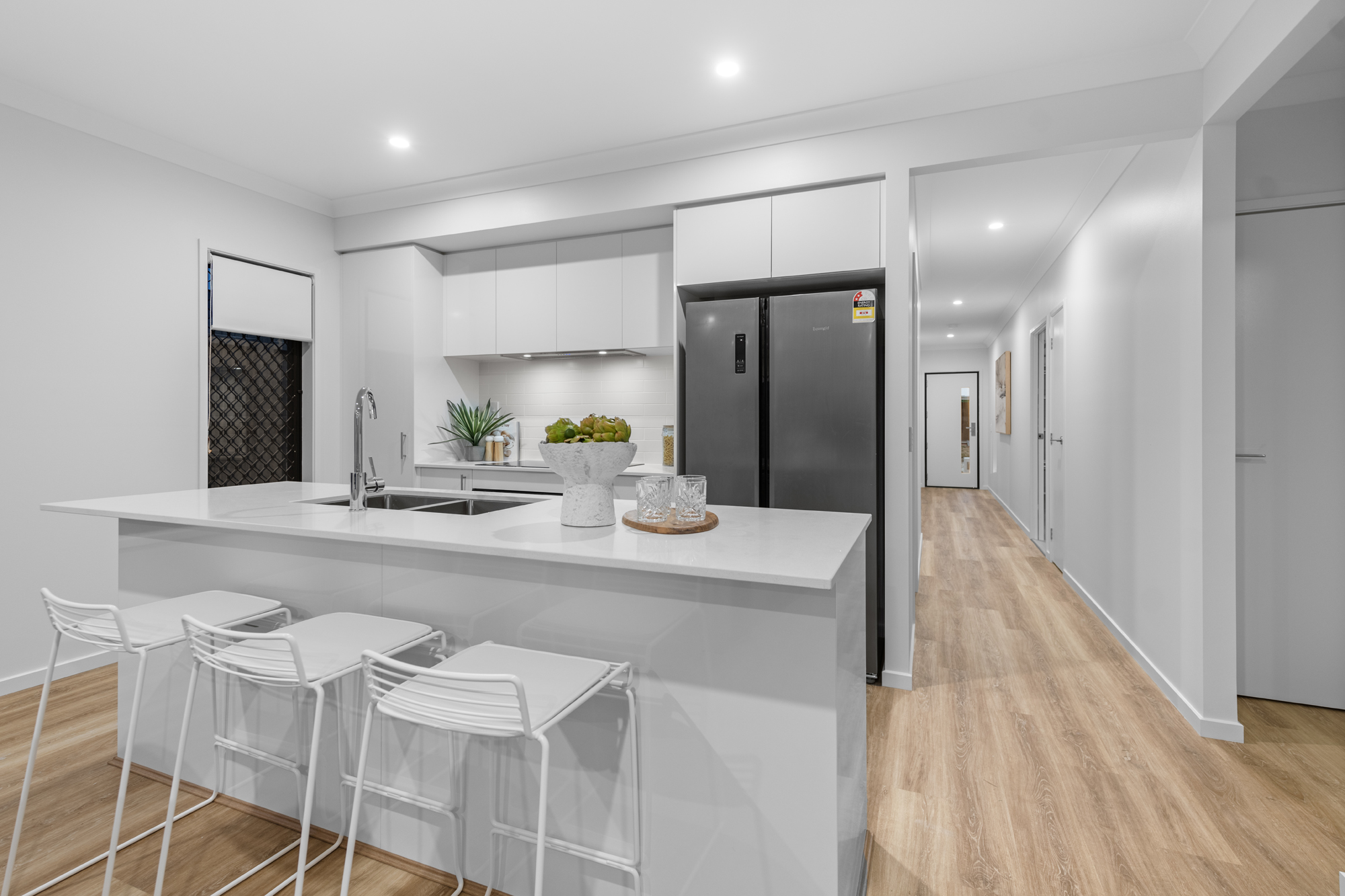 • A large luxury kitchen with Caesarstone bench tops and quality stainless steel appliances