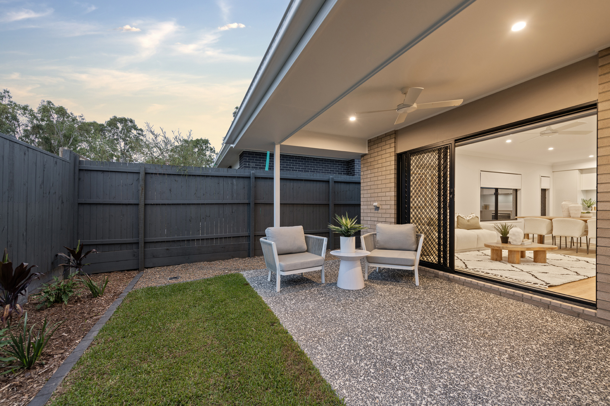 • A covered and tiled entertainer’s deck ideal for alfresco dining.