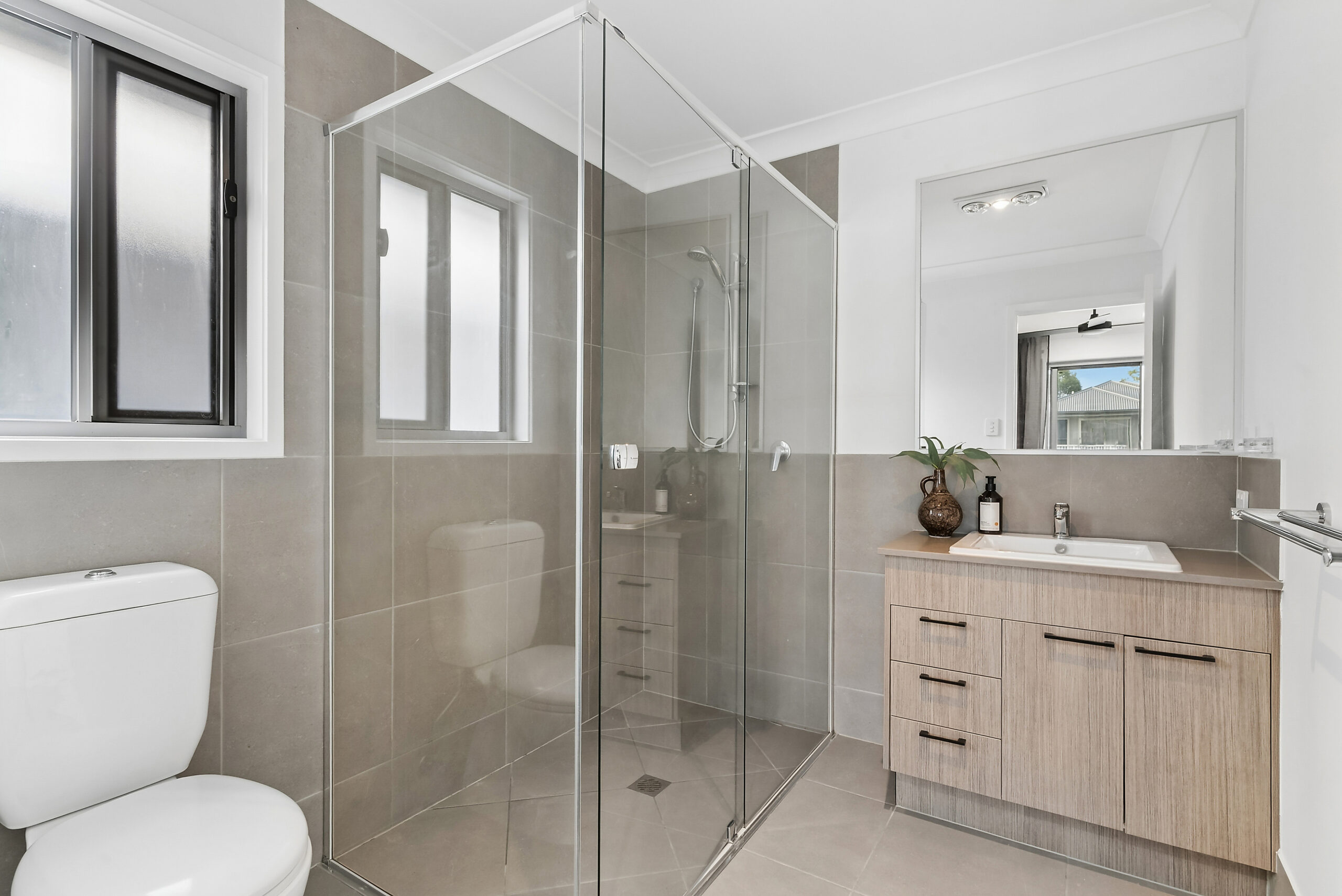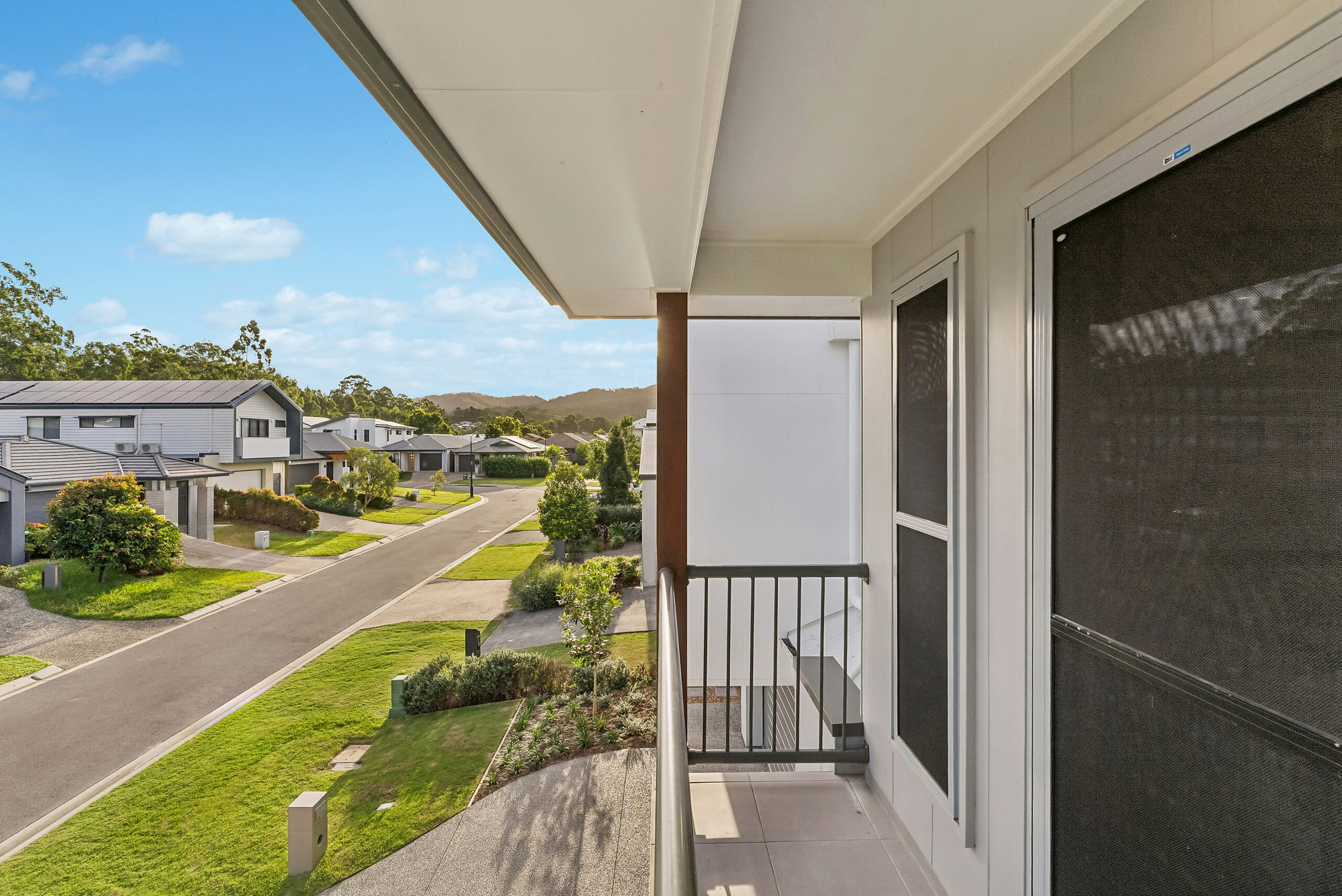 Upstairs, the home continues to impress with four bedrooms, each thoughtfully designed with built-in robes, ceiling fans, and Screen Away Blinds for added comfort, privacy, and style. The master suite is a true retreat, featuring a walk-in robe, an ensuite, and its own private balcony – the perfect place to unwind. A central main bathroom services the remaining bedrooms, complete with a full-sized bath and separate toilet.