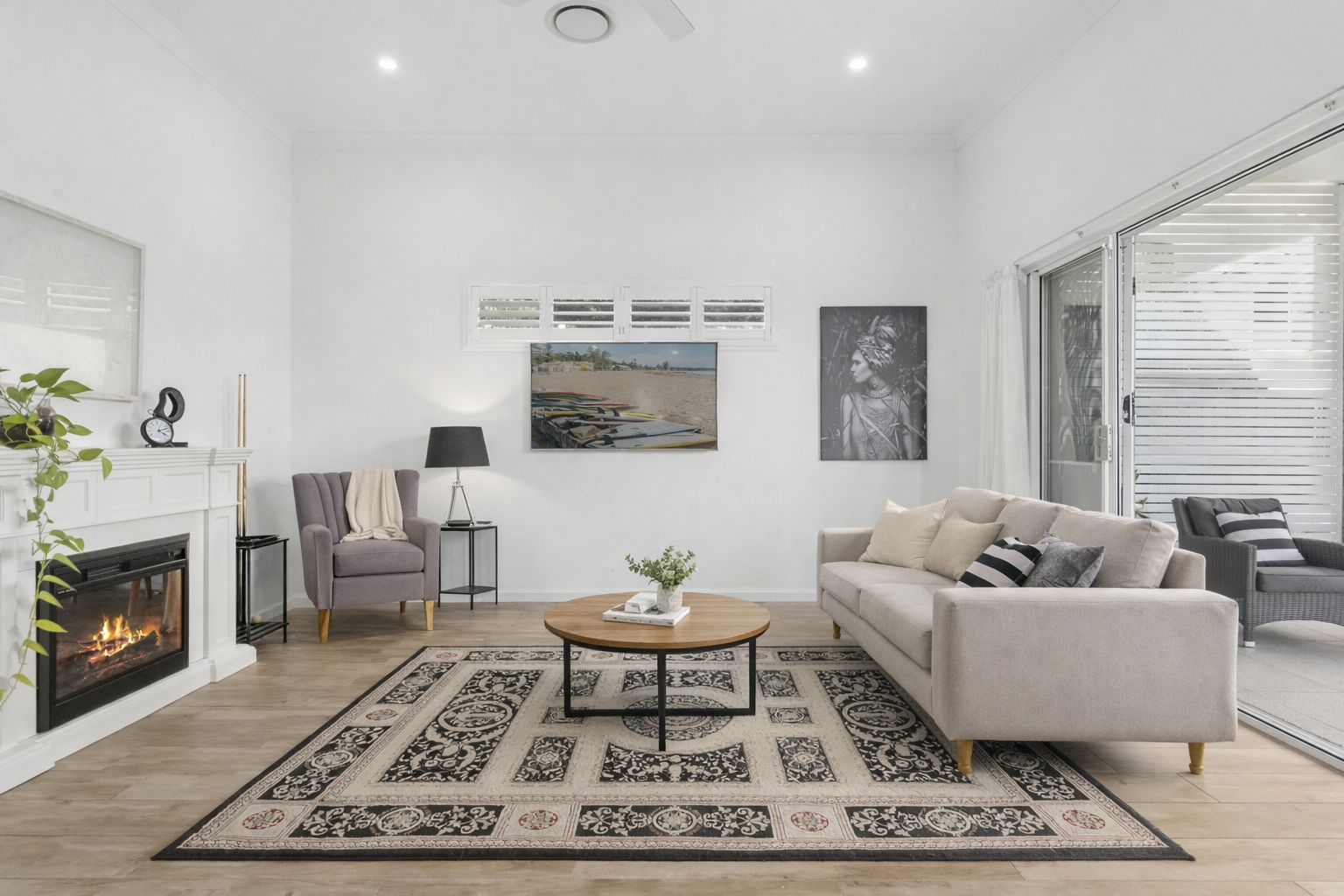 At the heart of the home, the open plan kitchen, living and dining area has been thoughtfully designed to feel both spacious and connected, flowing effortlessly out to the covered outdoor entertaining patio. This seamless transition creates a natural extension of the living space, overlooking the fully fenced backyard – a perfect space for relaxed family living or hosting with ease. Natural light pours through the home, while plantation shutters and a fireplace in the living area add a sense of warmth, comfort, and understated elegance.