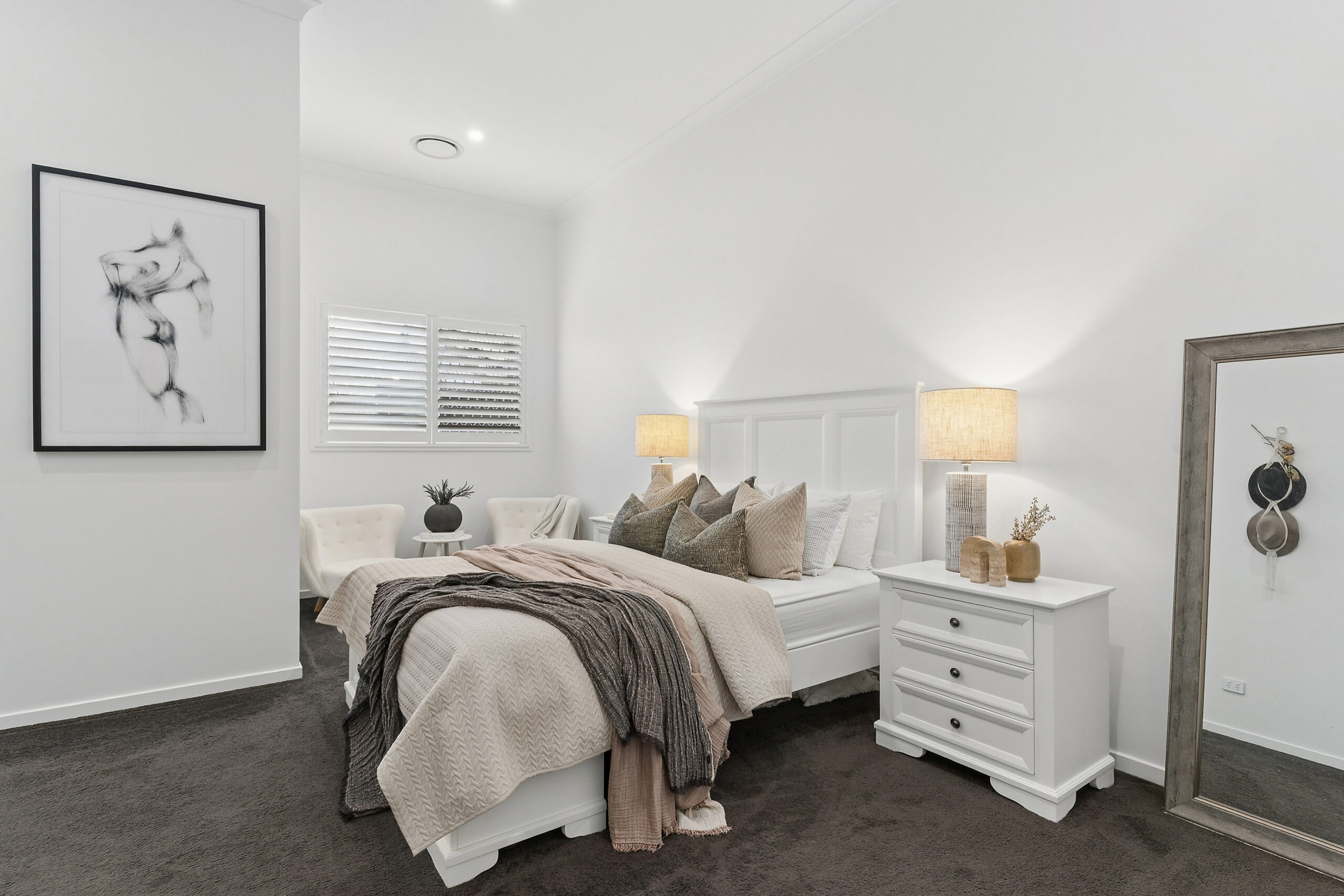 The master suite offers a private retreat, complete with a spacious walk-in robe and a beautiful ensuite. The additional bedrooms are serviced by a central bathroom featuring a bathtub and separate toilet, ideal for family convenience. A hallway storage cupboard adds further practicality, while the double lock up garage provides secure parking and additional storage options.